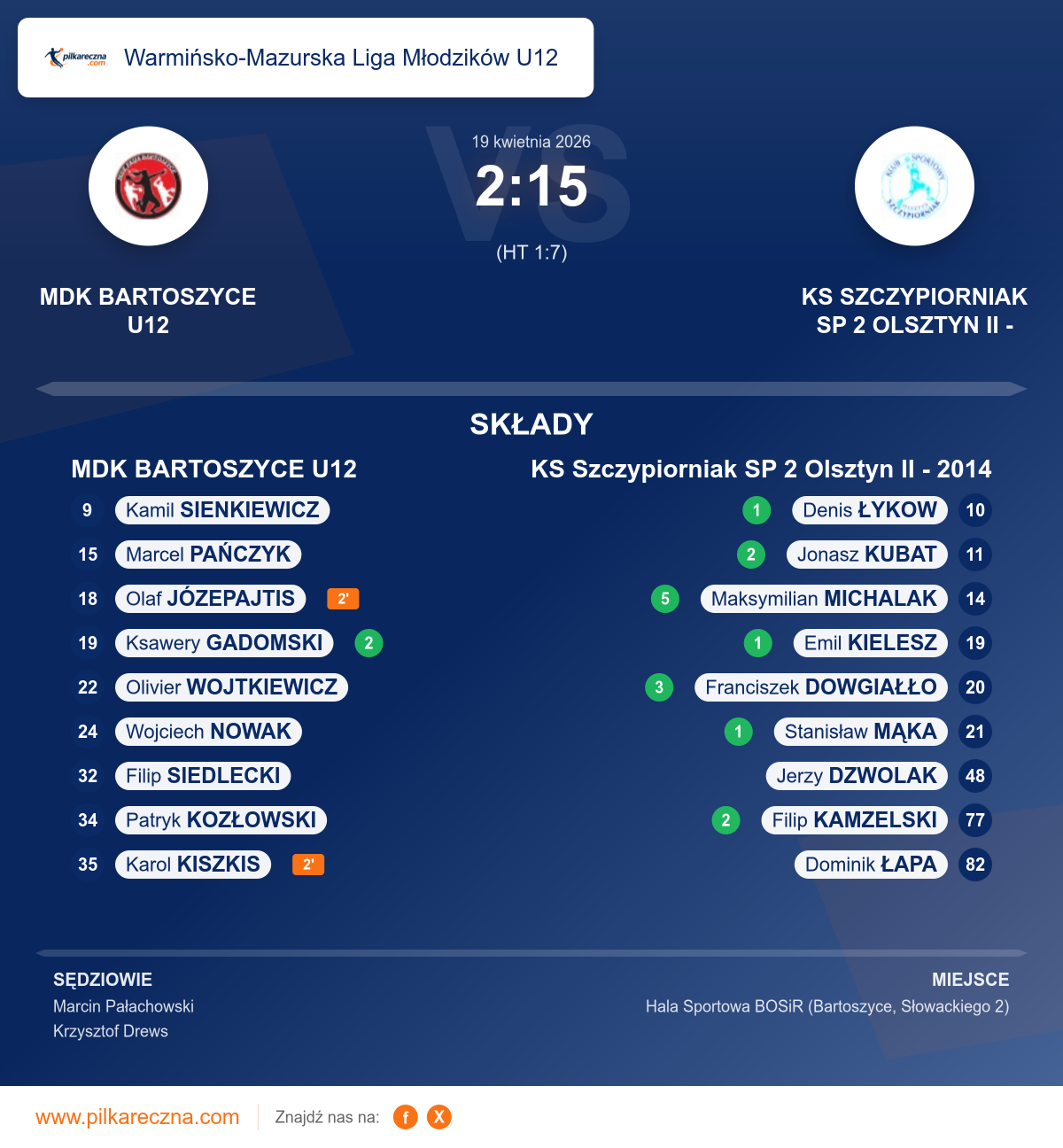 MDK BARTOSZYCE U12 — KS Szczypiorniak SP 2 Olsztyn II - 2014