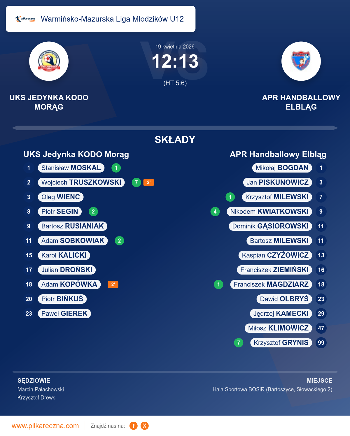 UKS Jedynka KODO Morąg 12–13 APR Handballowy Elbląg