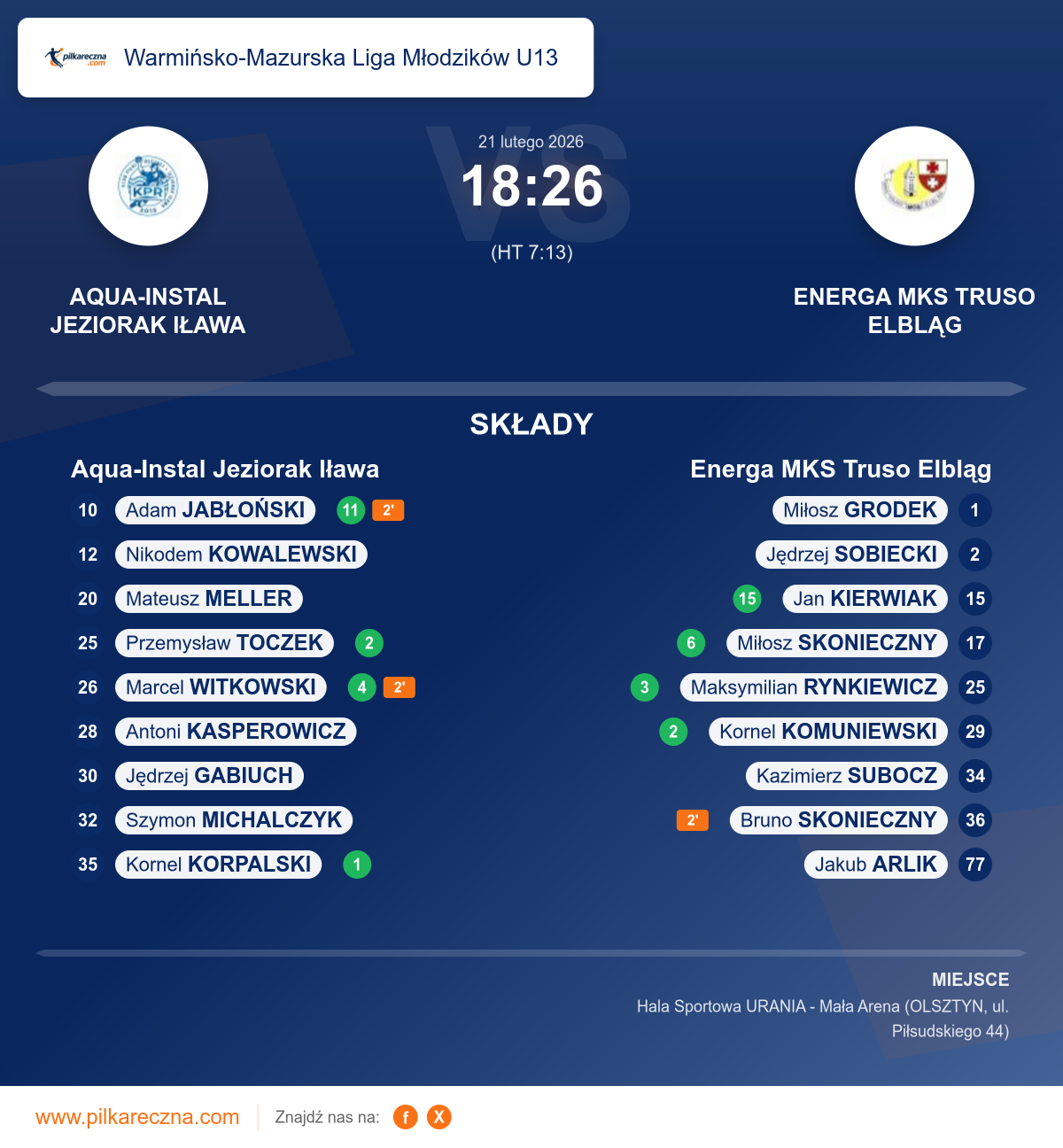 Aqua-Instal Jeziorak Iława 18–26 Energa MKS Truso Elbląg