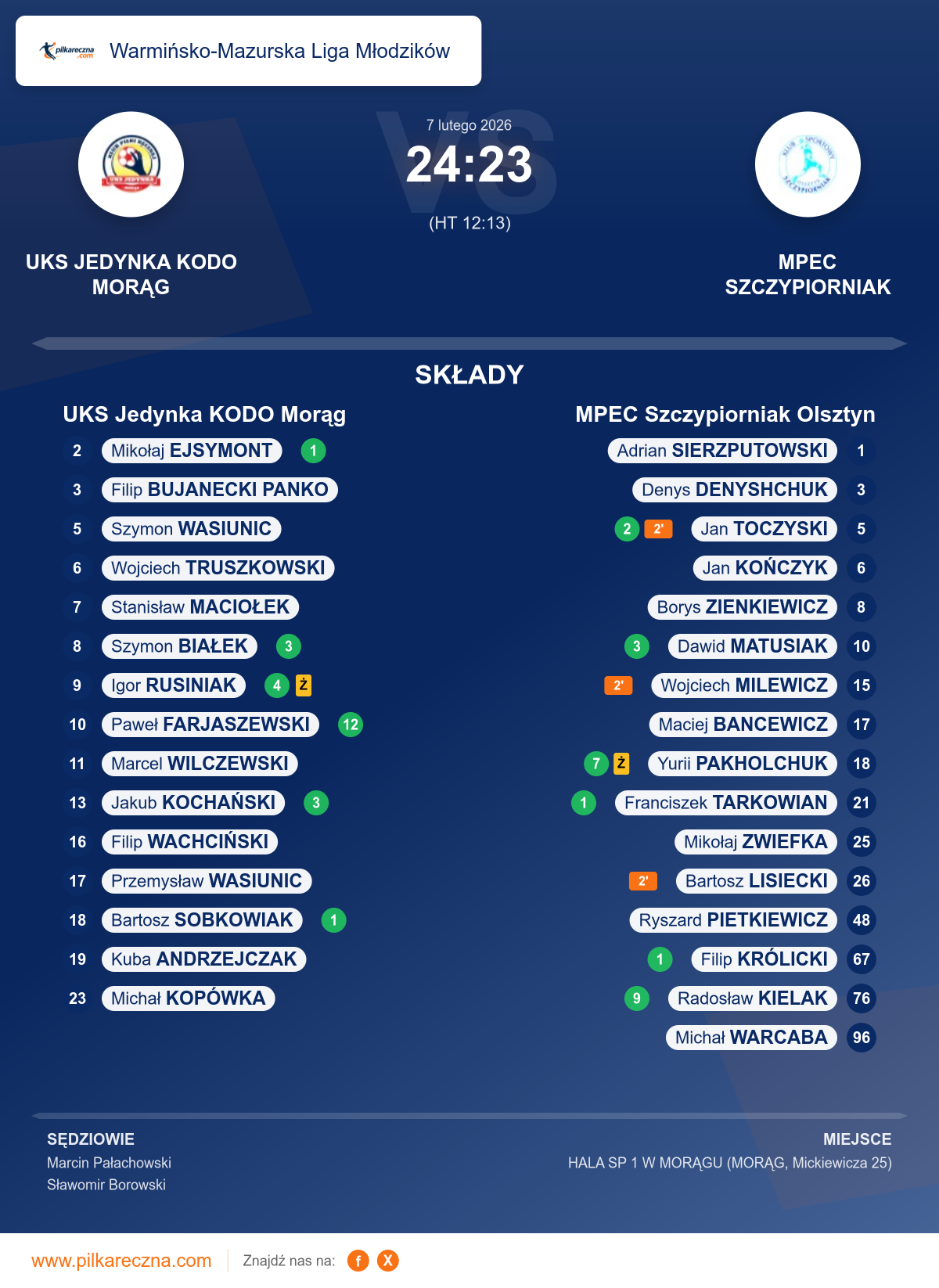 UKS Jedynka KODO Morąg 24–23 MPEC Szczypiorniak Olsztyn