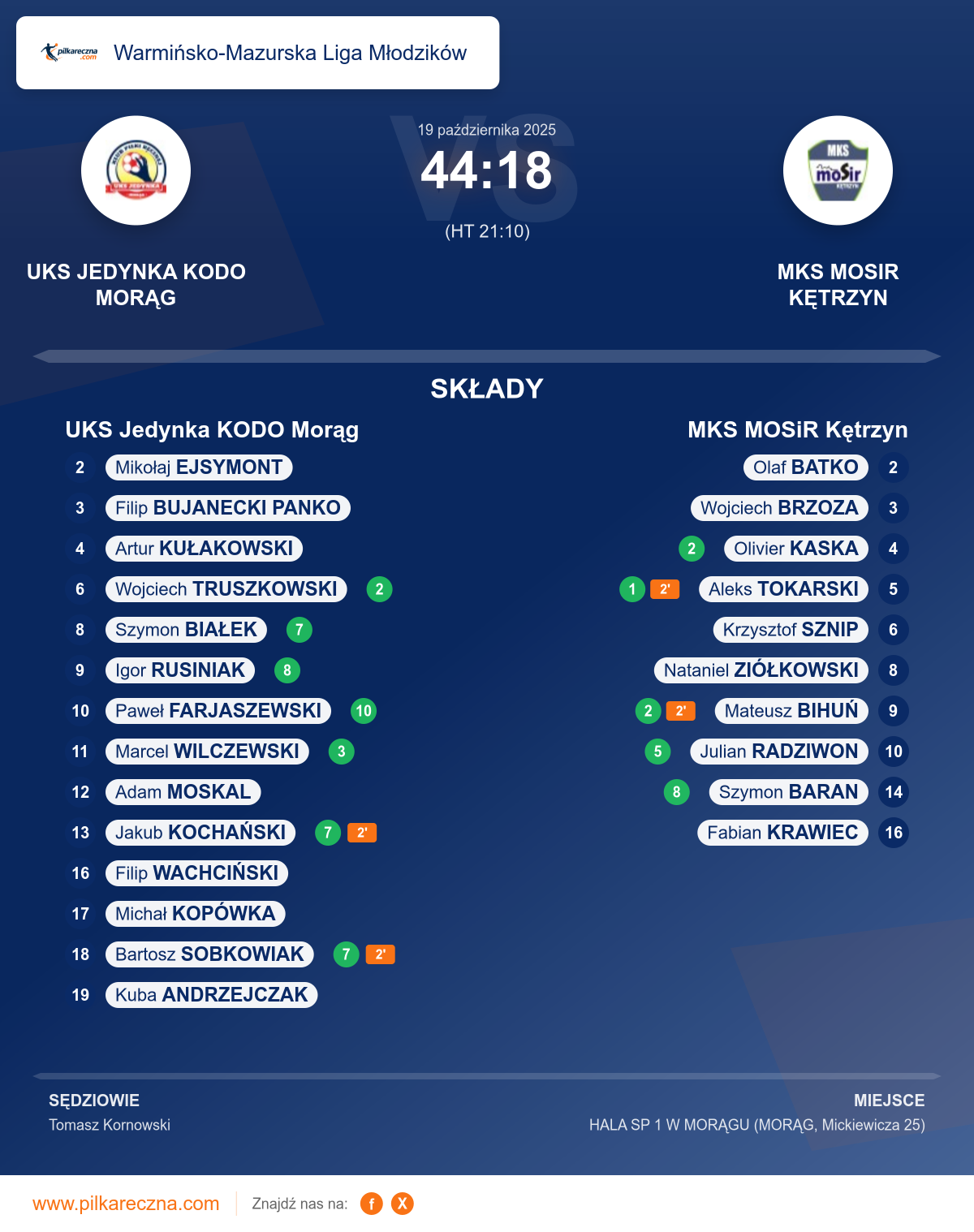 UKS Jedynka KODO Morąg 44–18 MKS MOSiR Kętrzyn
