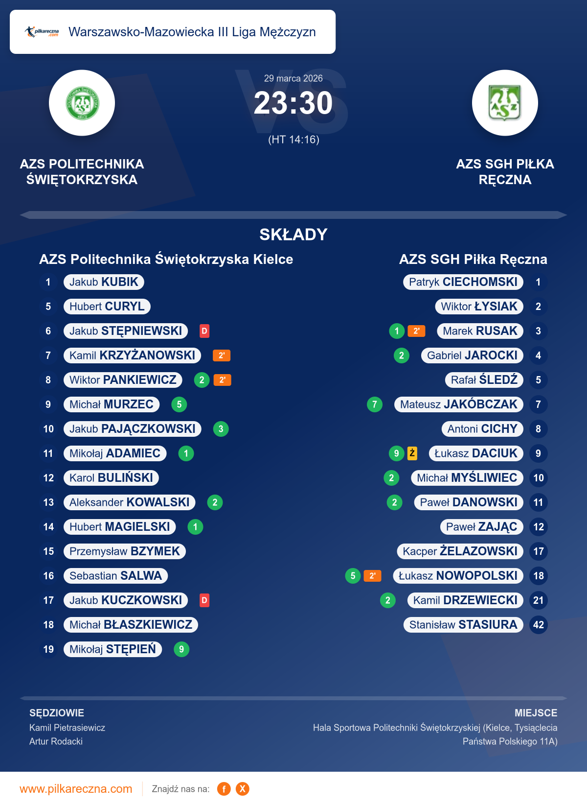 AZS Politechnika Świętokrzyska Kielce 23–30 AZS SGH Piłka Ręczna