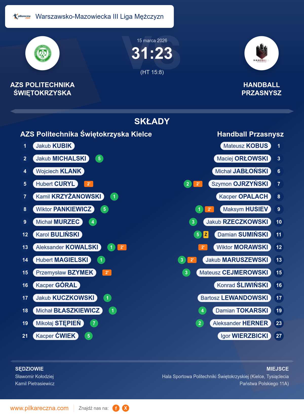 Wynik: 31–23 (HT 15–8)