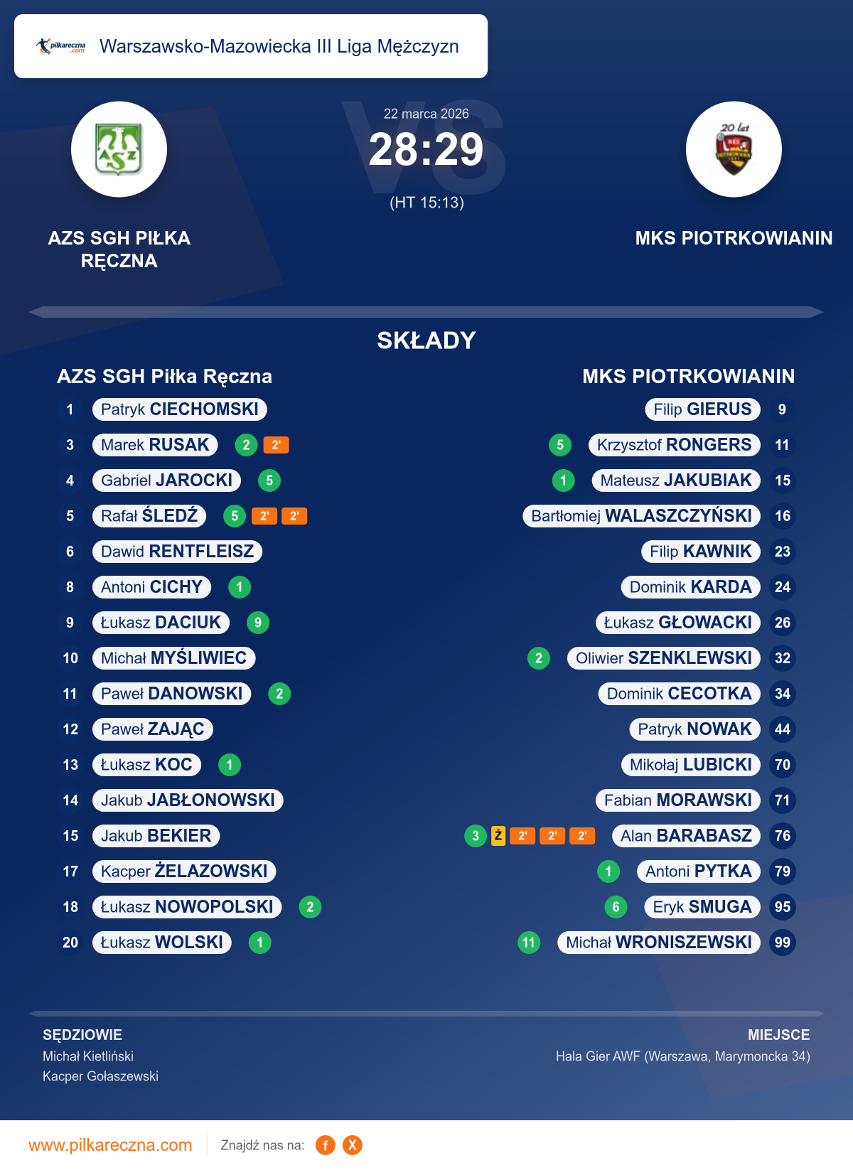 AZS SGH Piłka Ręczna 28–29 MKS PIOTRKOWIANIN
