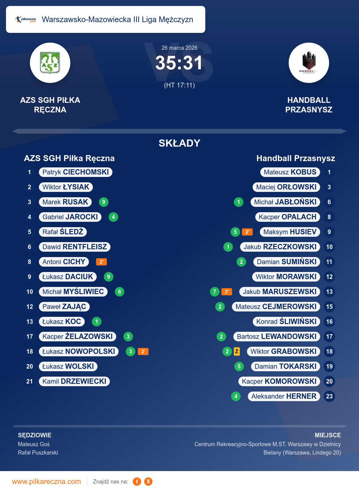 AZS SGH Piłka Ręczna 35–31 Handball Przasnysz