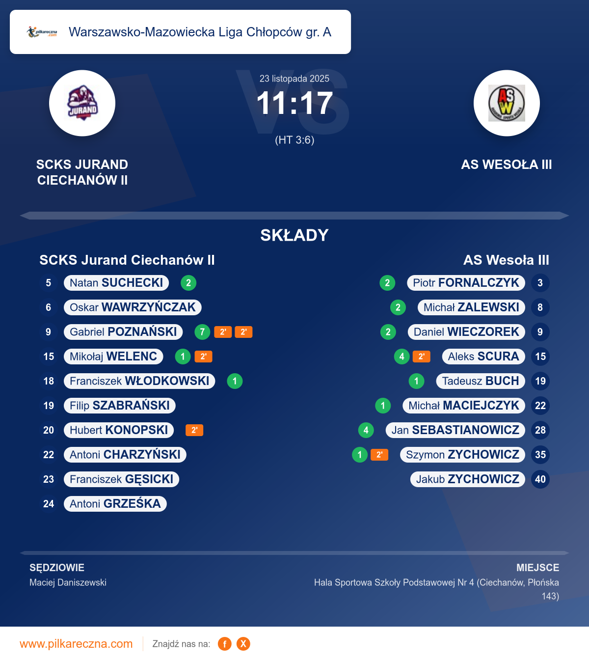 SCKS Jurand Ciechanów II 11–17 AS Wesoła III