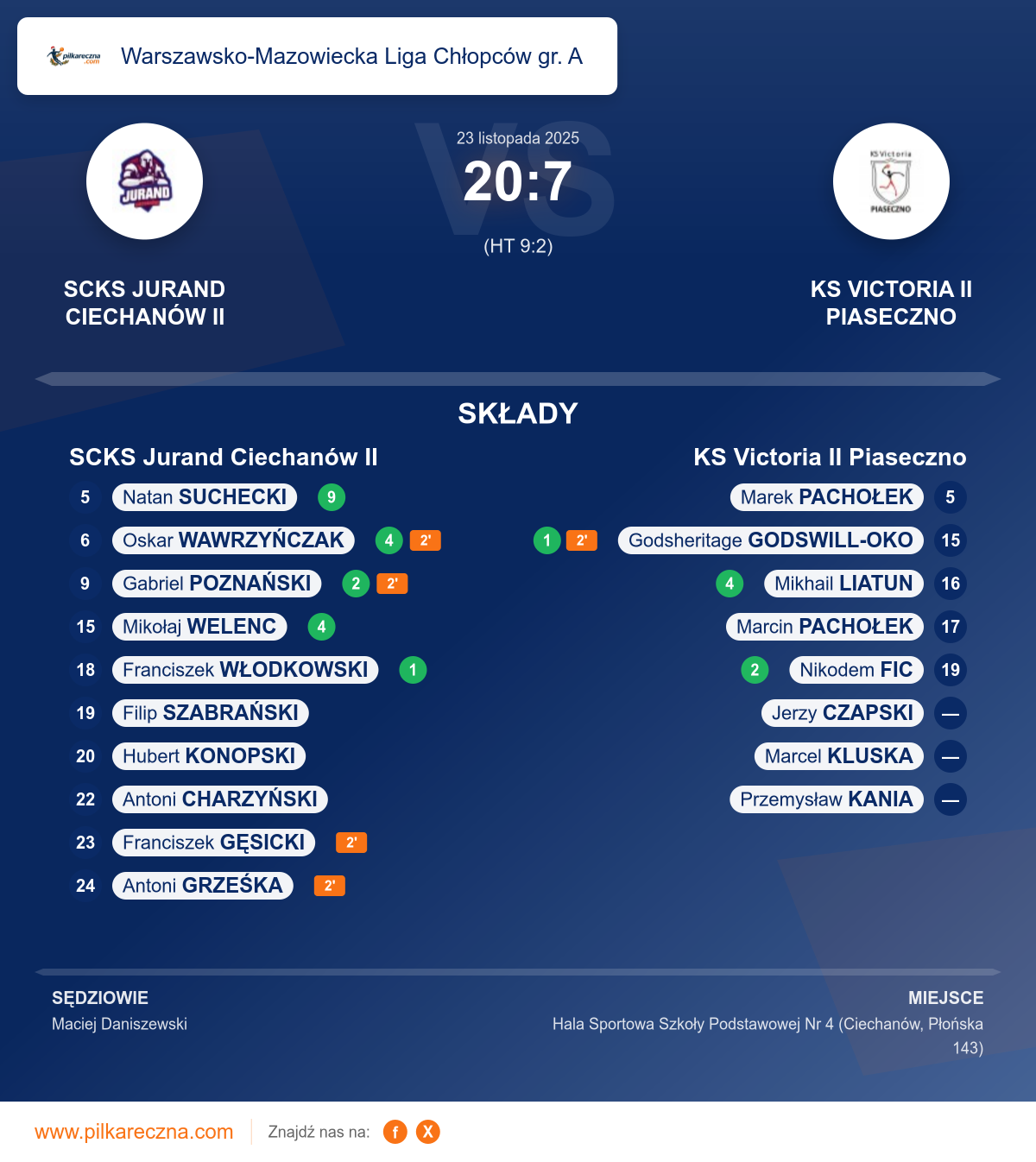 SCKS Jurand Ciechanów II 20–7 KS Victoria II Piaseczno