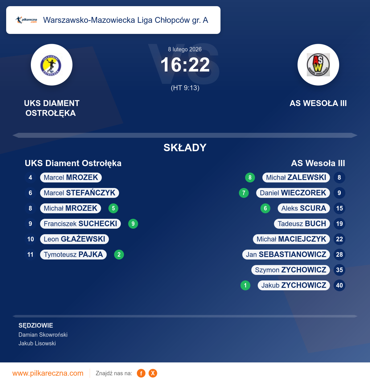 UKS Diament Ostrołęka 16–22 AS Wesoła III