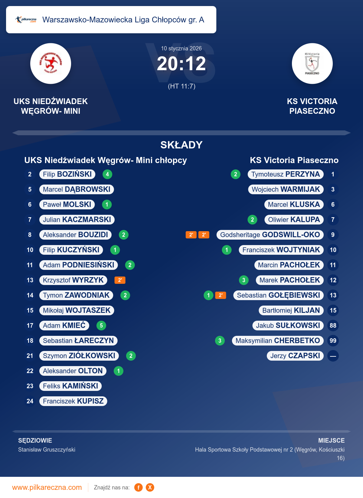 Wynik: 20–12 (HT 11–7)