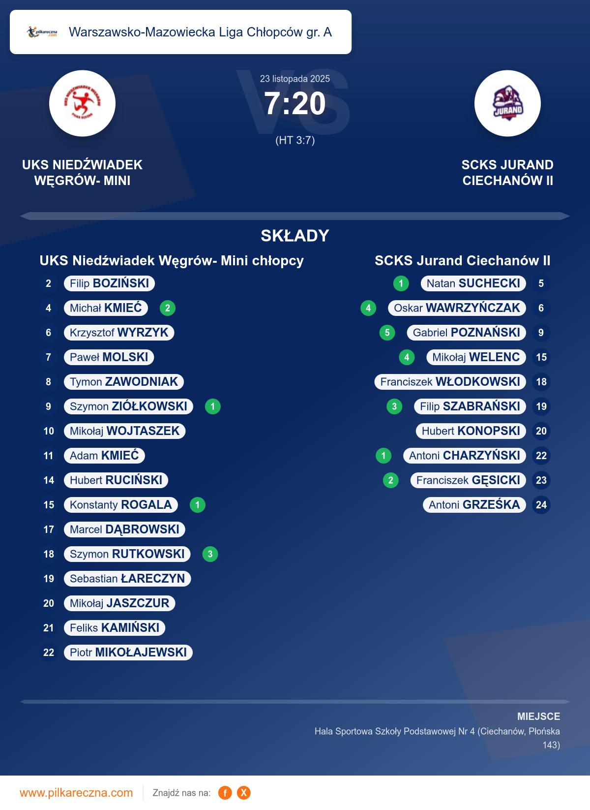 Zawodnicy: Gabriel Poznański (5), Mikołaj Welenc (4), Oskar Wawrzyńczak (4), Filip Szabrański (3), Franciszek Gęsicki (2), Antoni Charzyński (1), Natan Suchecki (1), Antoni Grześka, Franciszek Włodkowski, Hubert Konopski