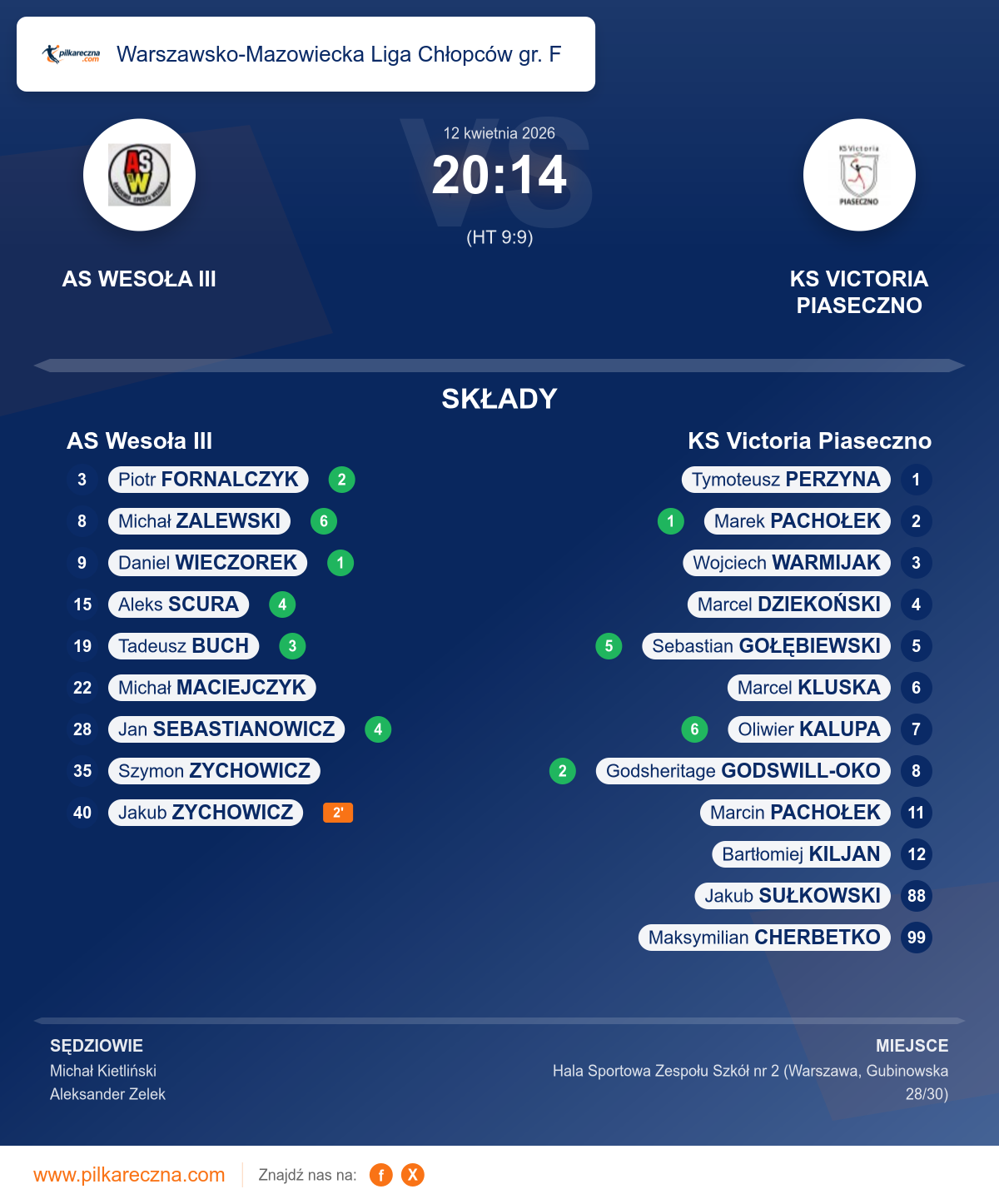 Wynik: 20–14 (HT 9–9)