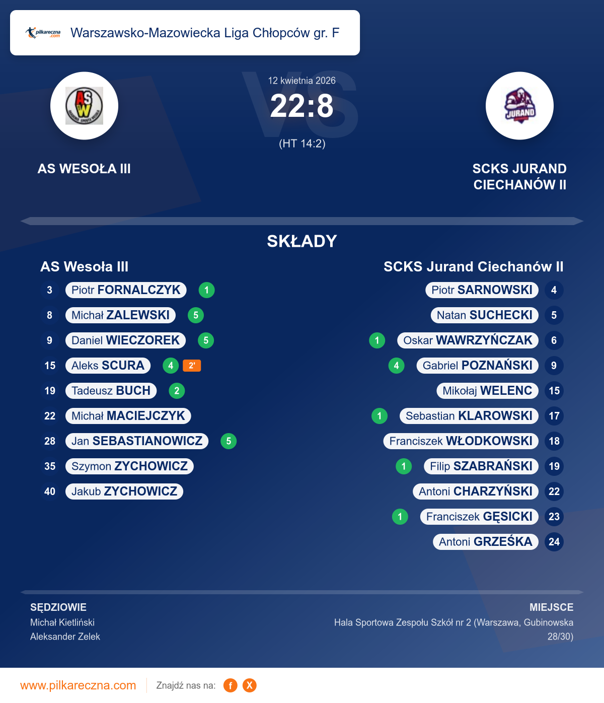 Sędziowali: Michał Kietliński, Aleksander Zelek
