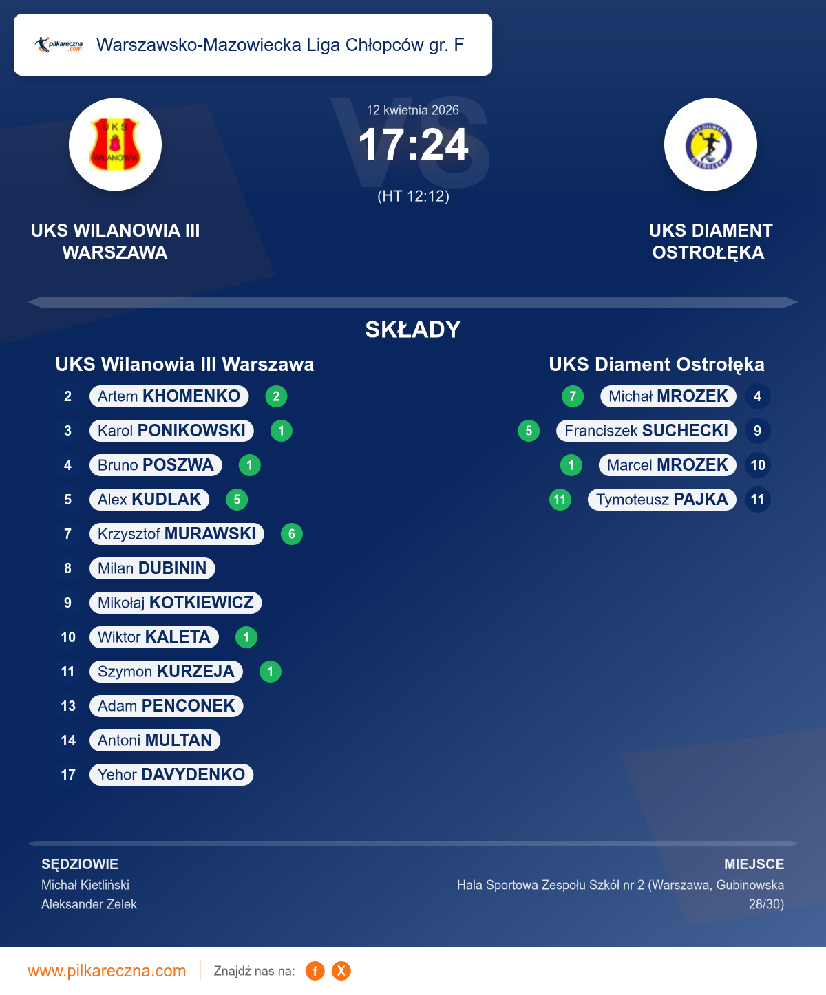 UKS Wilanowia III Warszawa — UKS Diament Ostrołęka