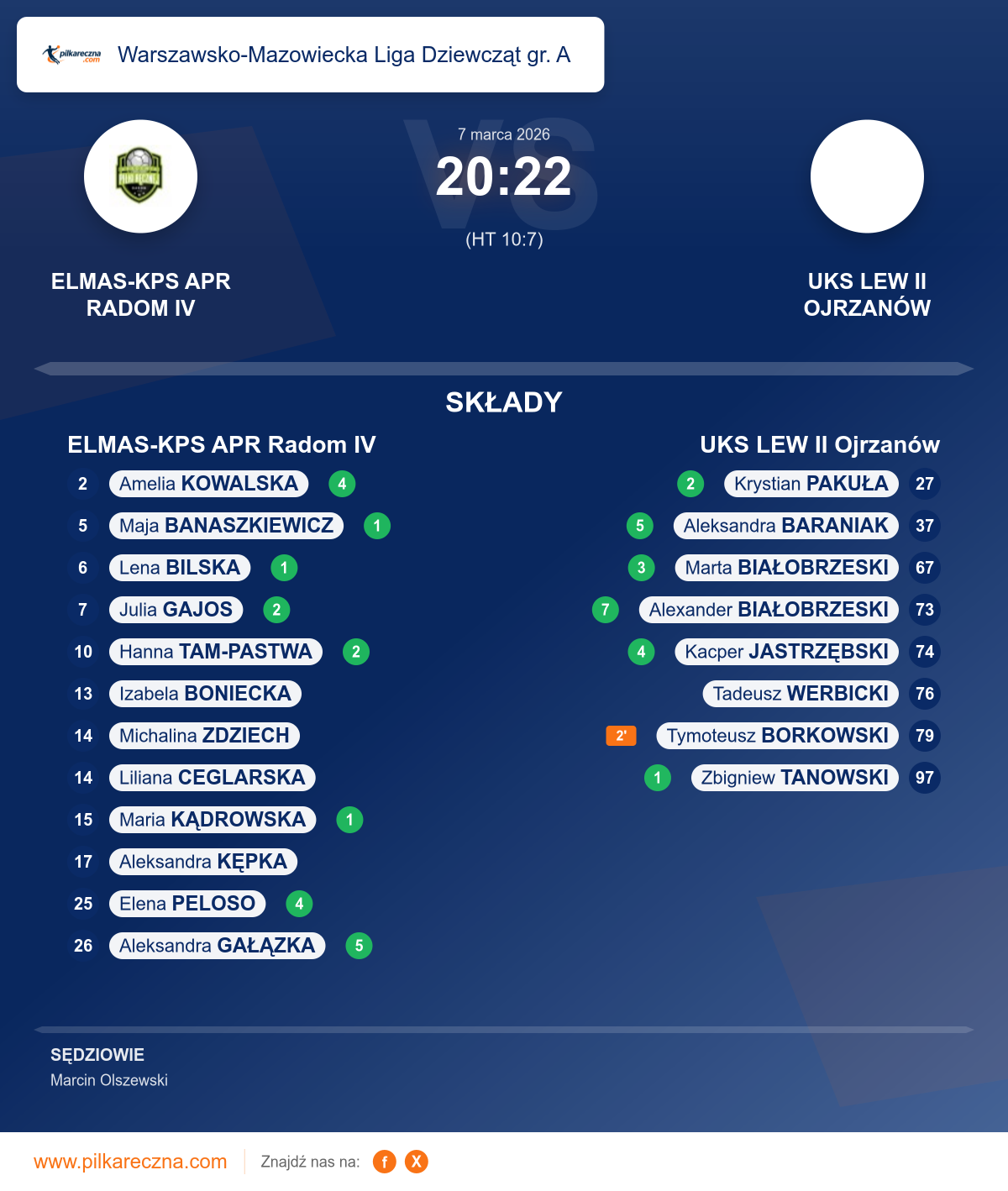 Wynik: 20–22 (HT 10–7)