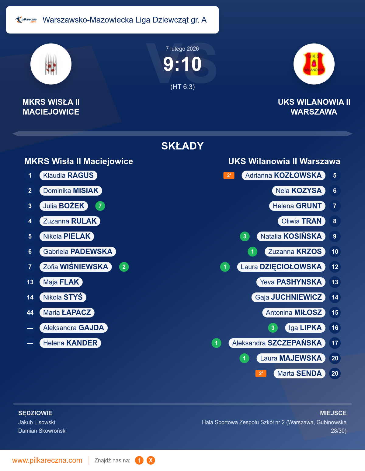 MKRS Wisła II Maciejowice 9–10 UKS Wilanowia II Warszawa