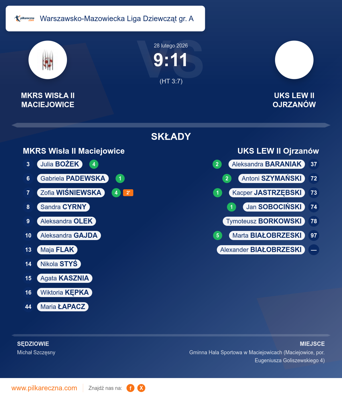 MKRS Wisła II Maciejowice 9–11 UKS LEW II Ojrzanów