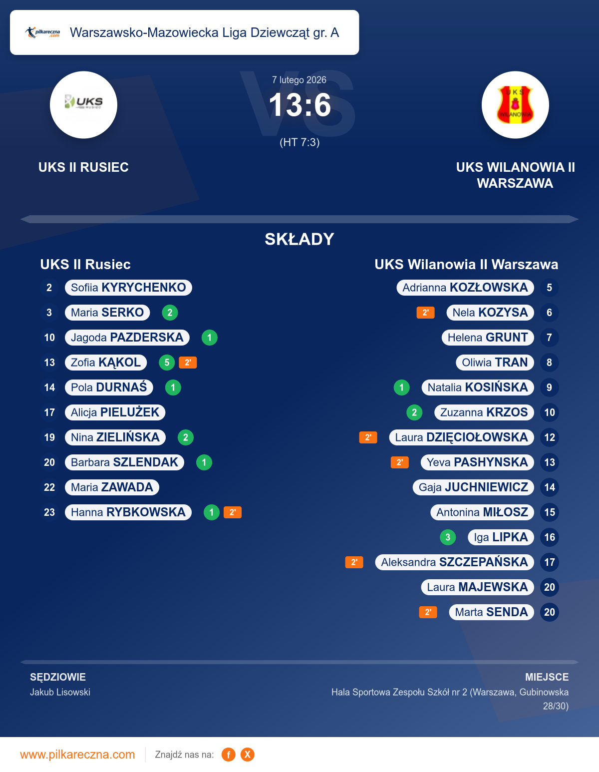 UKS II Rusiec 13–6 UKS Wilanowia II Warszawa