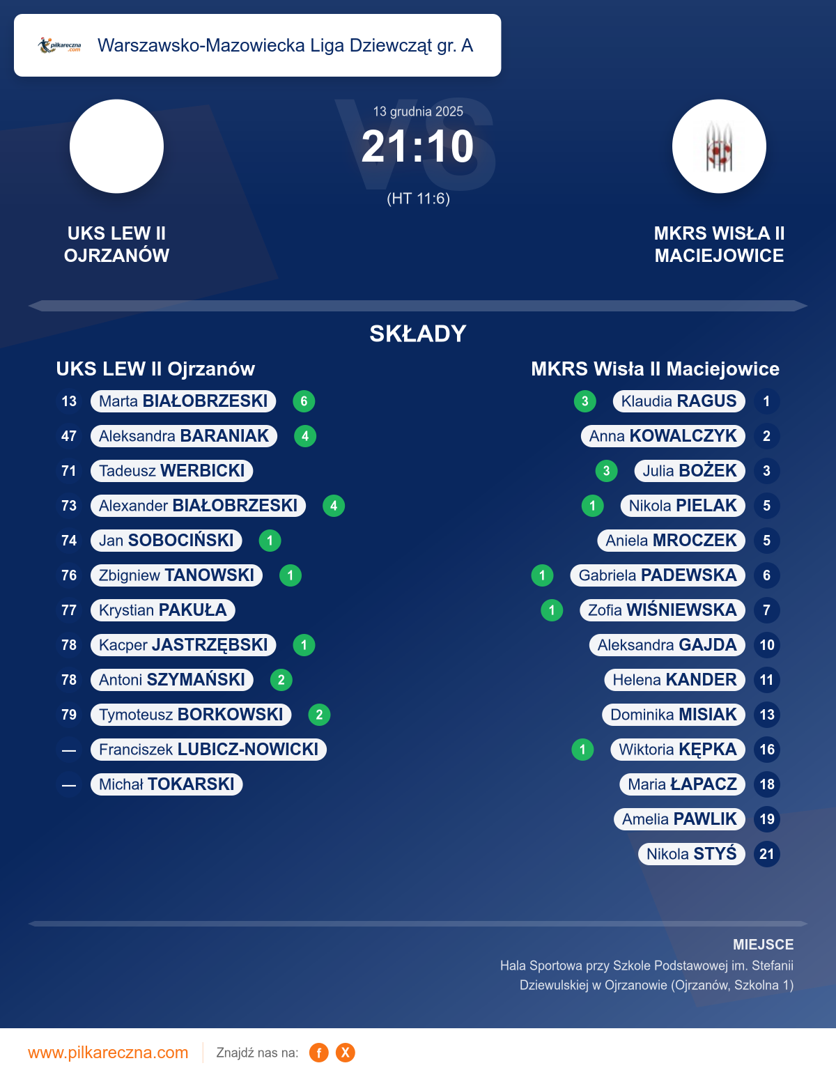 UKS LEW II Ojrzanów 21–10 MKRS Wisła II Maciejowice