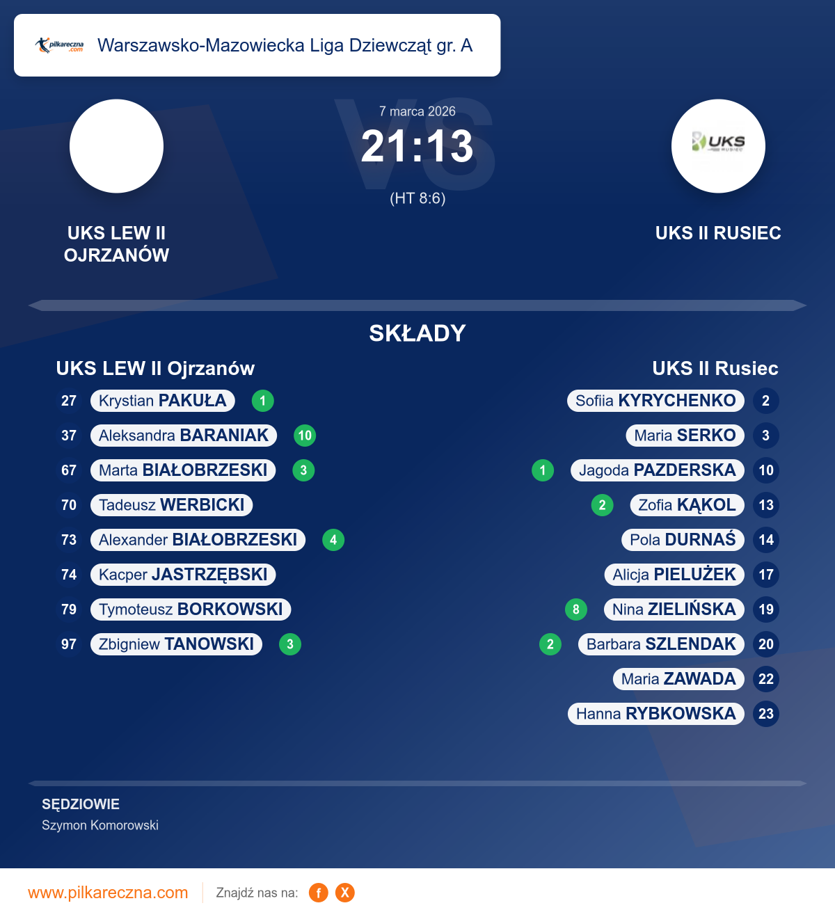 UKS LEW II Ojrzanów 21–13 UKS II Rusiec