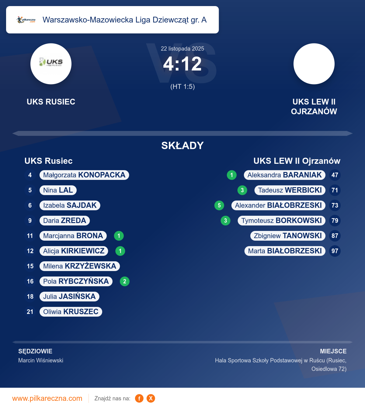 UKS Rusiec 4–12 UKS LEW II Ojrzanów