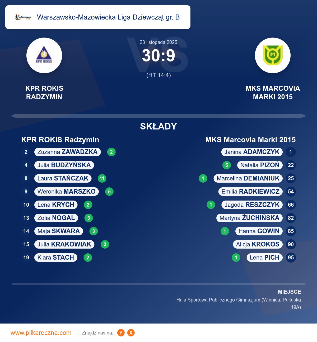 KPR ROKiS Radzymin 30–9 MKS Marcovia Marki 2015