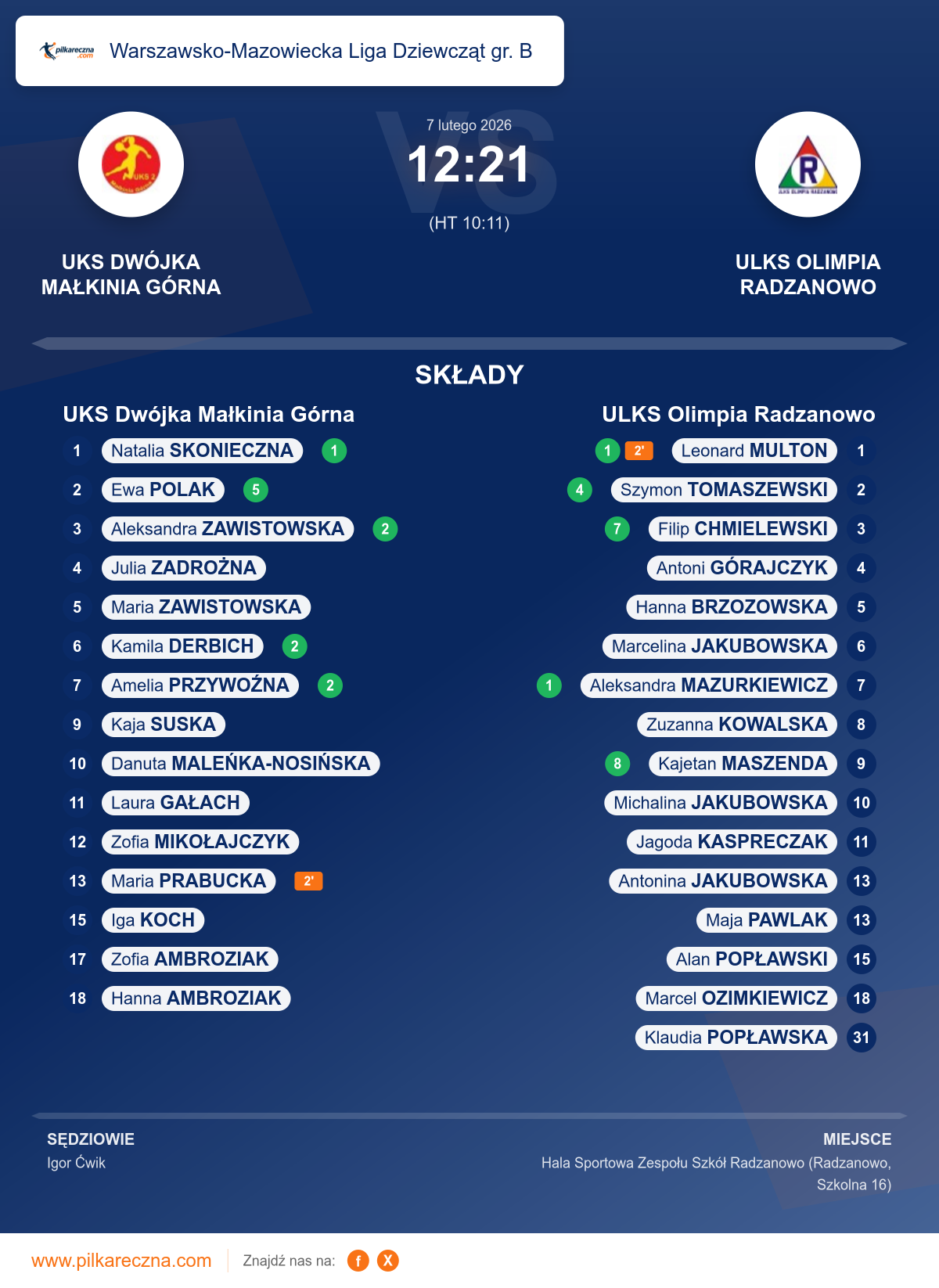 UKS Dwójka Małkinia Górna 12–21 ULKS Olimpia Radzanowo
