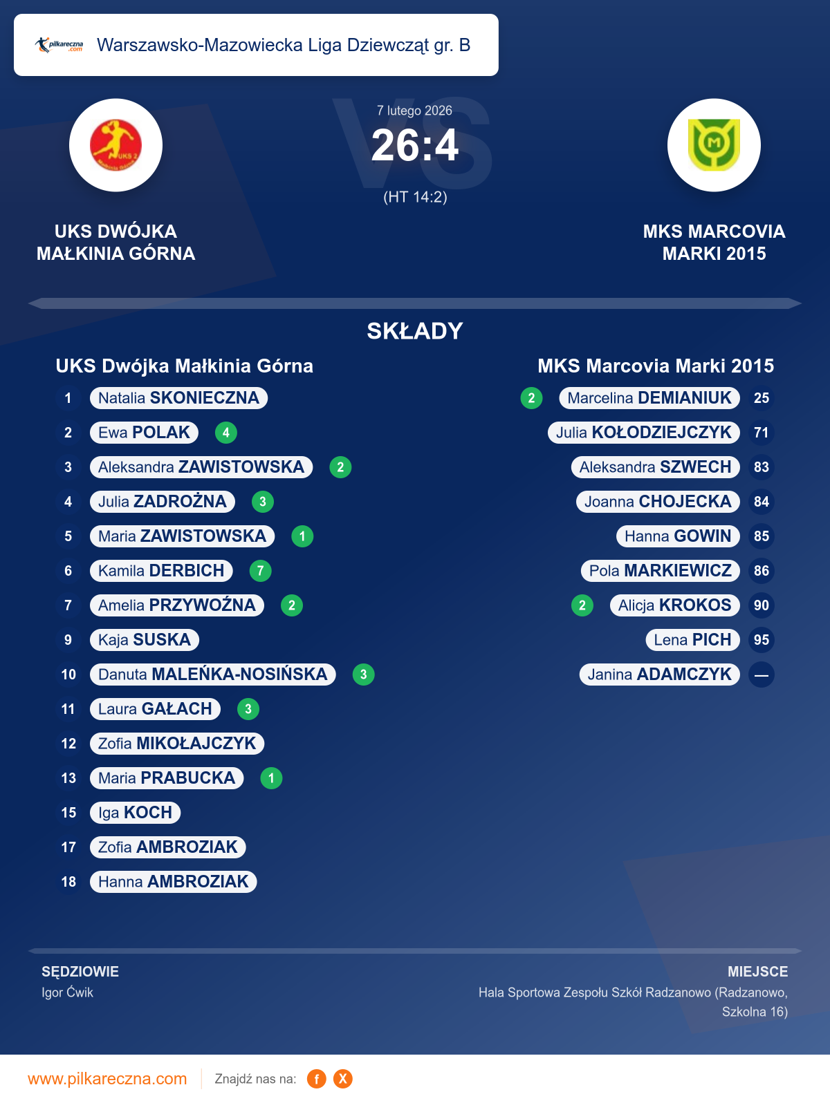 Bramkarze: Natalia Skonieczna, Zofia Mikołajczyk
