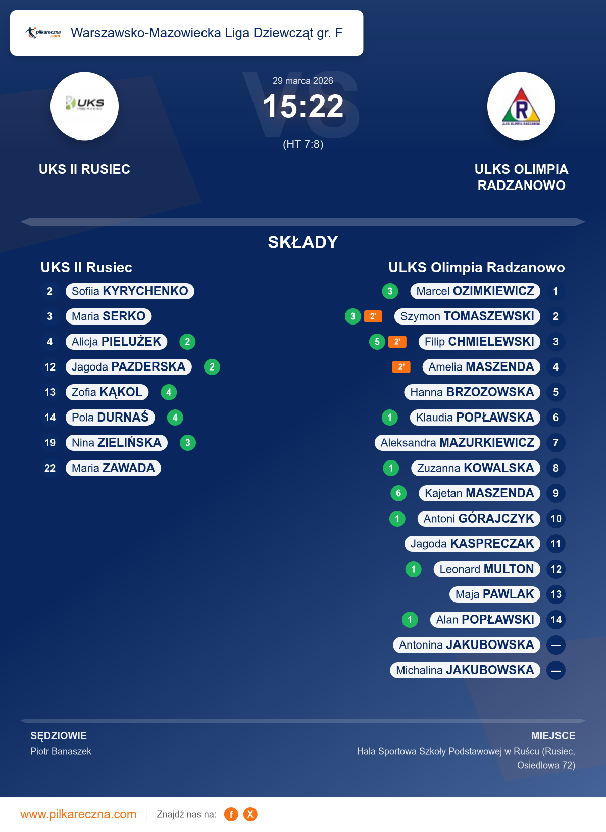 UKS II Rusiec 15–22 ULKS Olimpia Radzanowo