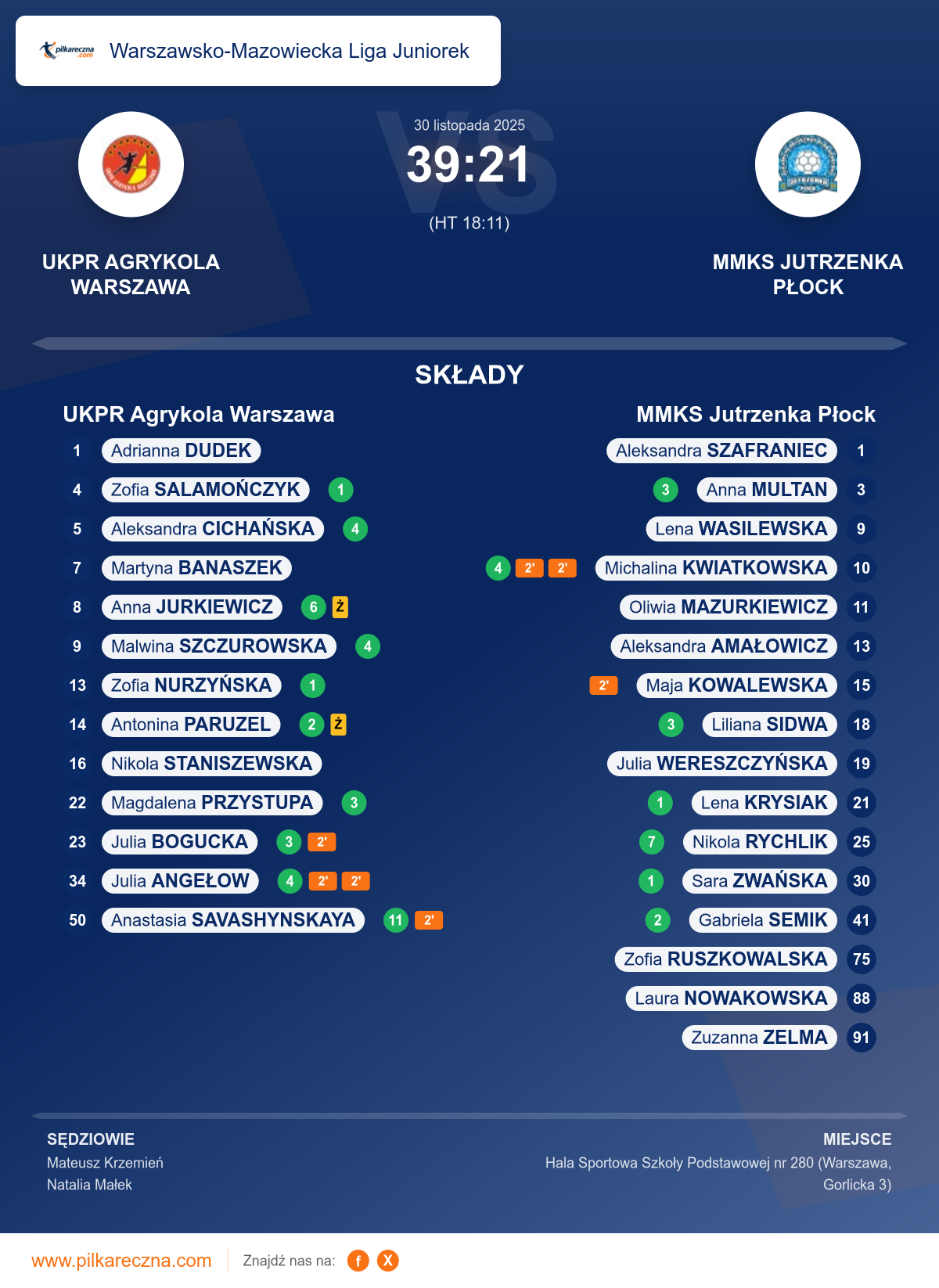UKPR Agrykola Warszawa 39–21 MMKS Jutrzenka Płock
