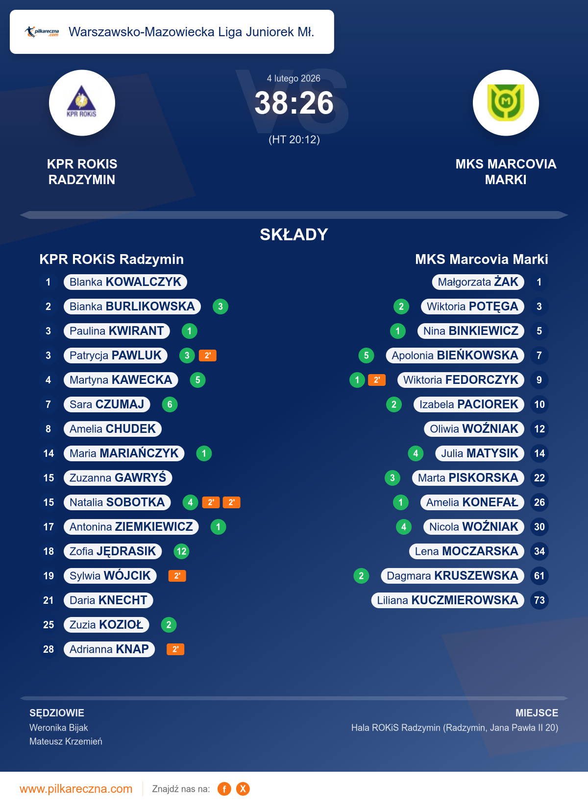 KPR ROKiS Radzymin 38–26 MKS Marcovia Marki