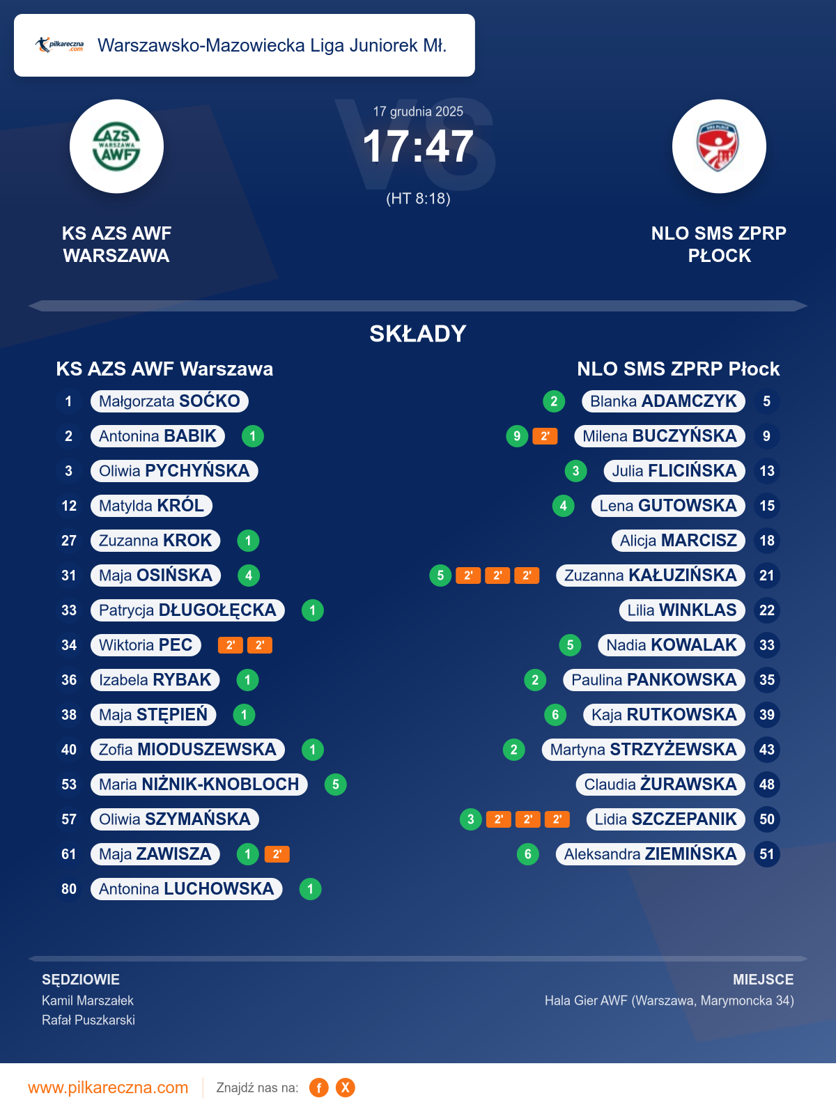 Zawodnicy: Milena Buczyńska (9), Aleksandra Ziemińska (6), Kaja Rutkowska (6), Nadia Kowalak (5), Zuzanna Kałuzińska (5), Lena Gutowska (4), Julia Flicińska (3), Lidia Szczepanik (3), Blanka Adamczyk (2), Martyna Strzyżewska (2), Paulina Pankowska (2), Lilia Winklas