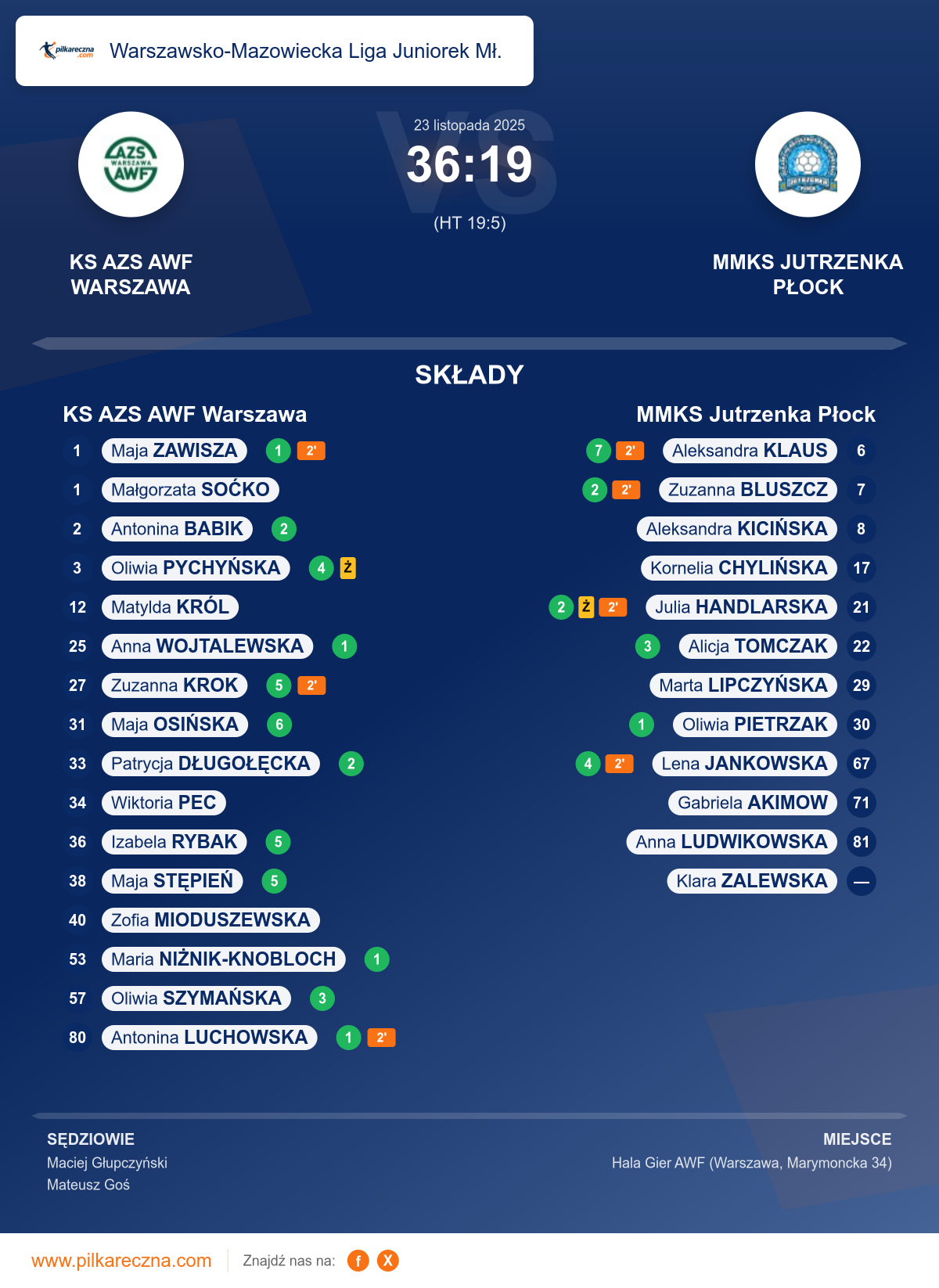Zawodnicy: Maja Osińska (6), Izabela Rybak (5), Maja Stępień (5), Zuzanna Krok (5), Oliwia Pychyńska (4), Oliwia Szymańska (3), Antonina Babik (2), Patrycja Długołęcka (2), Anna Wojtalewska (1), Antonina Luchowska (1), Maja Zawisza (1), Maria Niżnik-knobloch (1), Wiktoria Pec, Zofia Mioduszewska