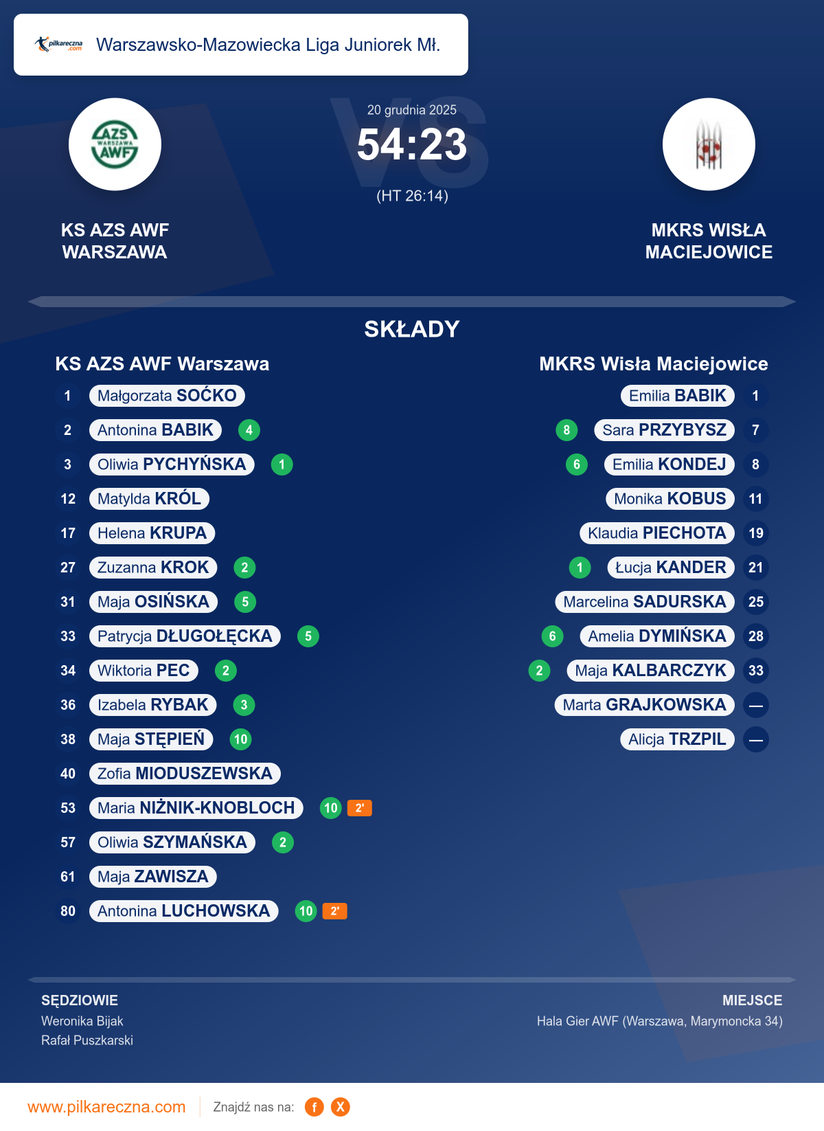 KS AZS AWF Warszawa 54–23 MKRS Wisła Maciejowice