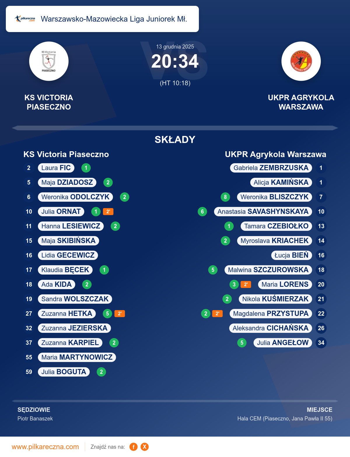 KS Victoria Piaseczno 20–34 UKPR Agrykola Warszawa