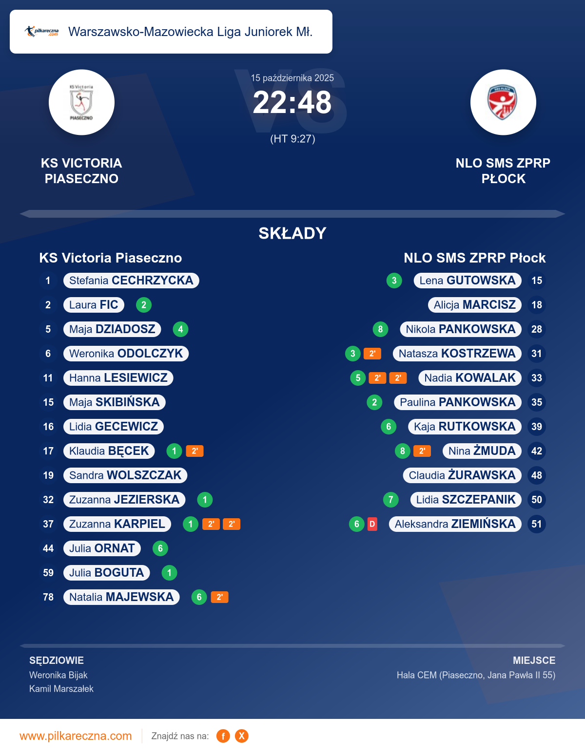 KS Victoria Piaseczno 22–48 NLO SMS ZPRP Płock