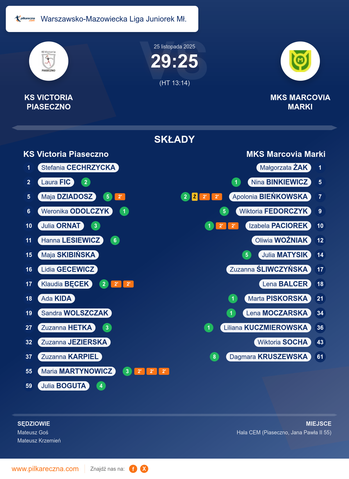 KS Victoria Piaseczno 29–25 MKS Marcovia Marki