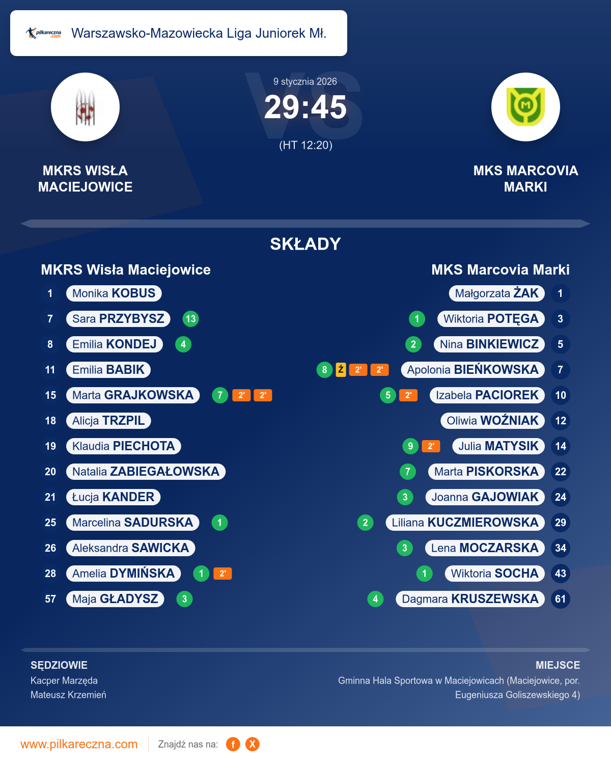 MKRS Wisła Maciejowice 29–45 MKS Marcovia Marki