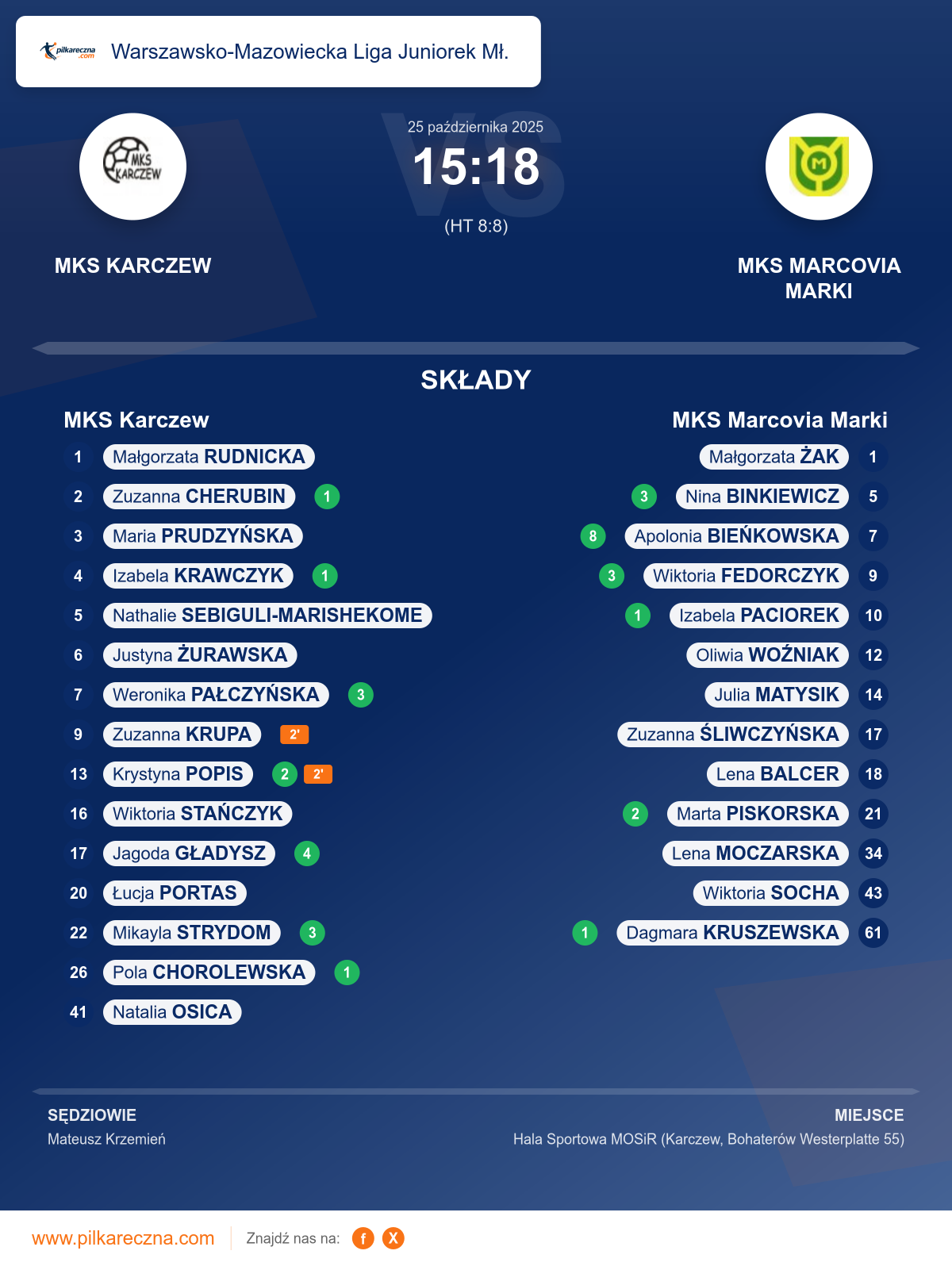 Zawodnicy: Apolonia Bieńkowska (8), Nina Binkiewicz (3), Wiktoria Fedorczyk (3), Marta Piskorska (2), Dagmara Kruszewska (1), Izabela Paciorek (1), Julia Matysik, Lena Balcer, Lena Moczarska, Wiktoria Socha, Zuzanna Śliwczyńska