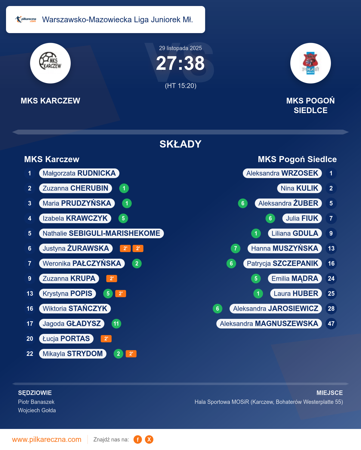 MKS Karczew 27–38 MKS Pogoń Siedlce