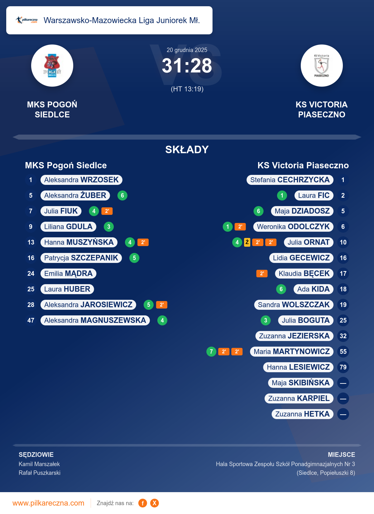 Sędziowali: Kamil Marszałek, Rafał Puszkarski