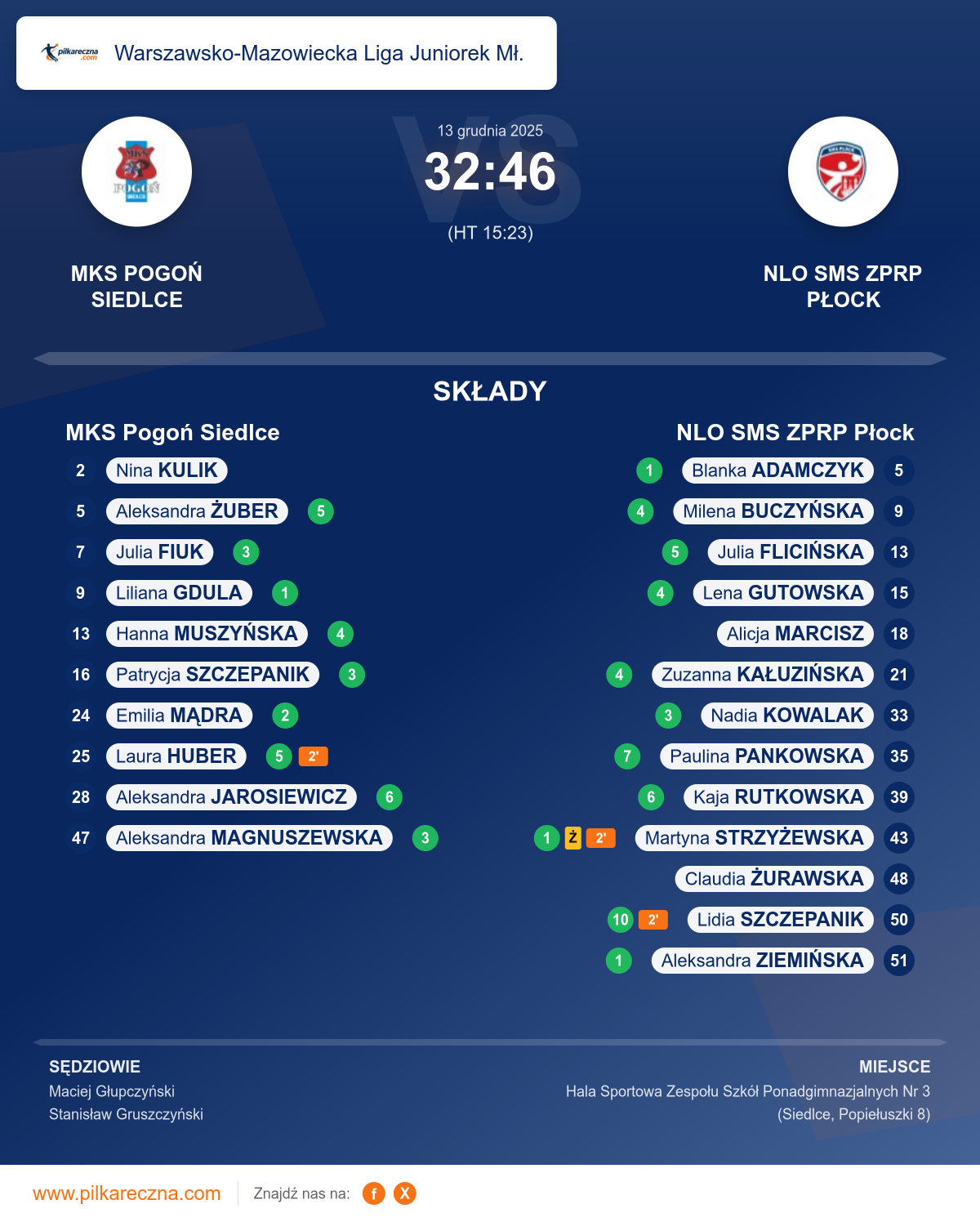 MKS Pogoń Siedlce 32–46 NLO SMS ZPRP Płock