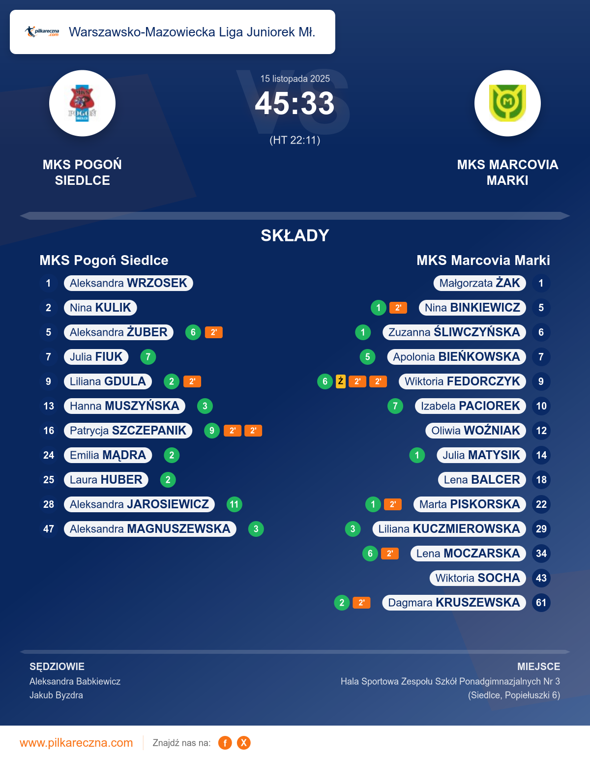 MKS Pogoń Siedlce 45–33 MKS Marcovia Marki