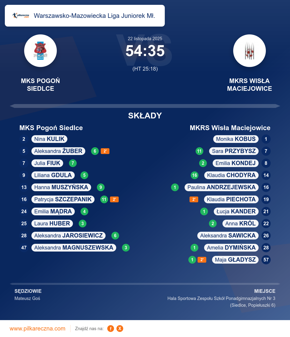 MKS Pogoń Siedlce 54–35 MKRS Wisła Maciejowice