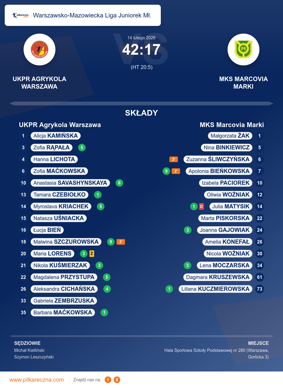 UKPR Agrykola Warszawa — MKS Marcovia Marki