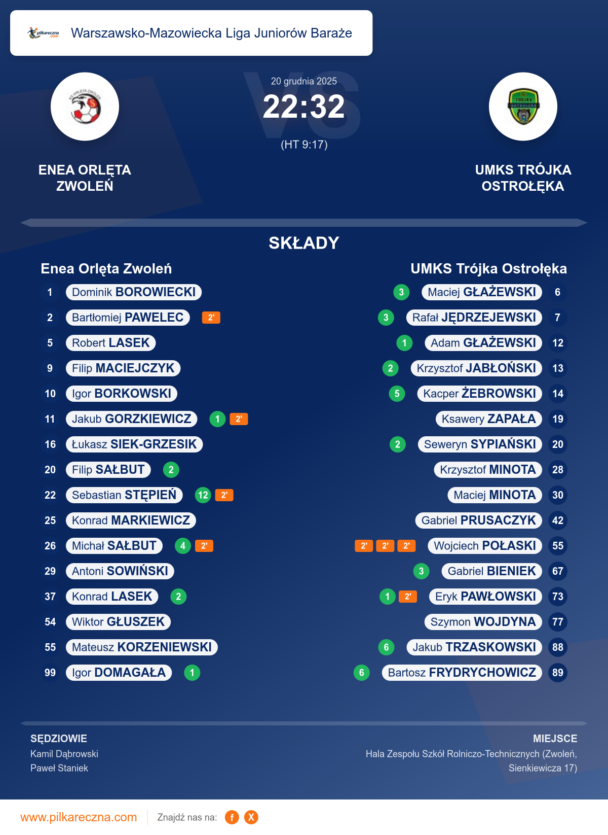 Enea Orlęta Zwoleń — UMKS Trójka Ostrołęka