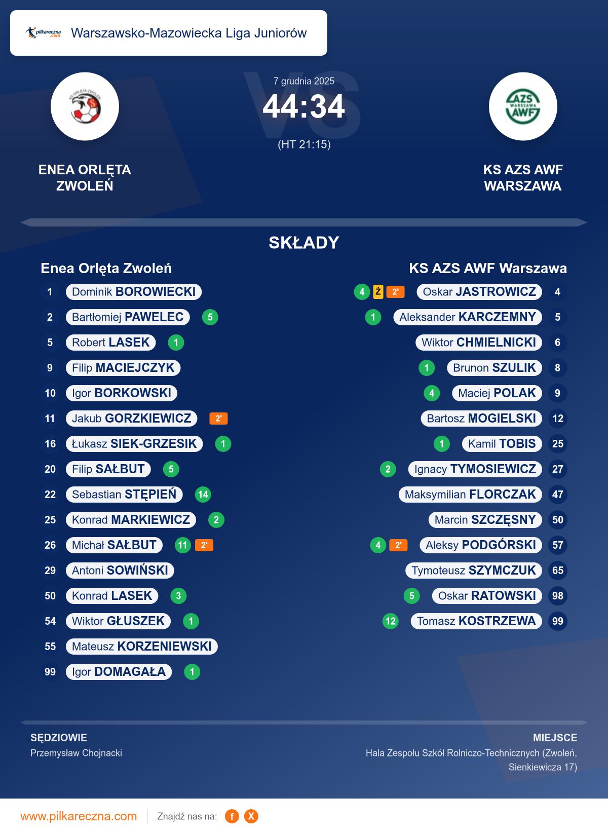 Enea Orlęta Zwoleń 44–34 KS AZS AWF Warszawa