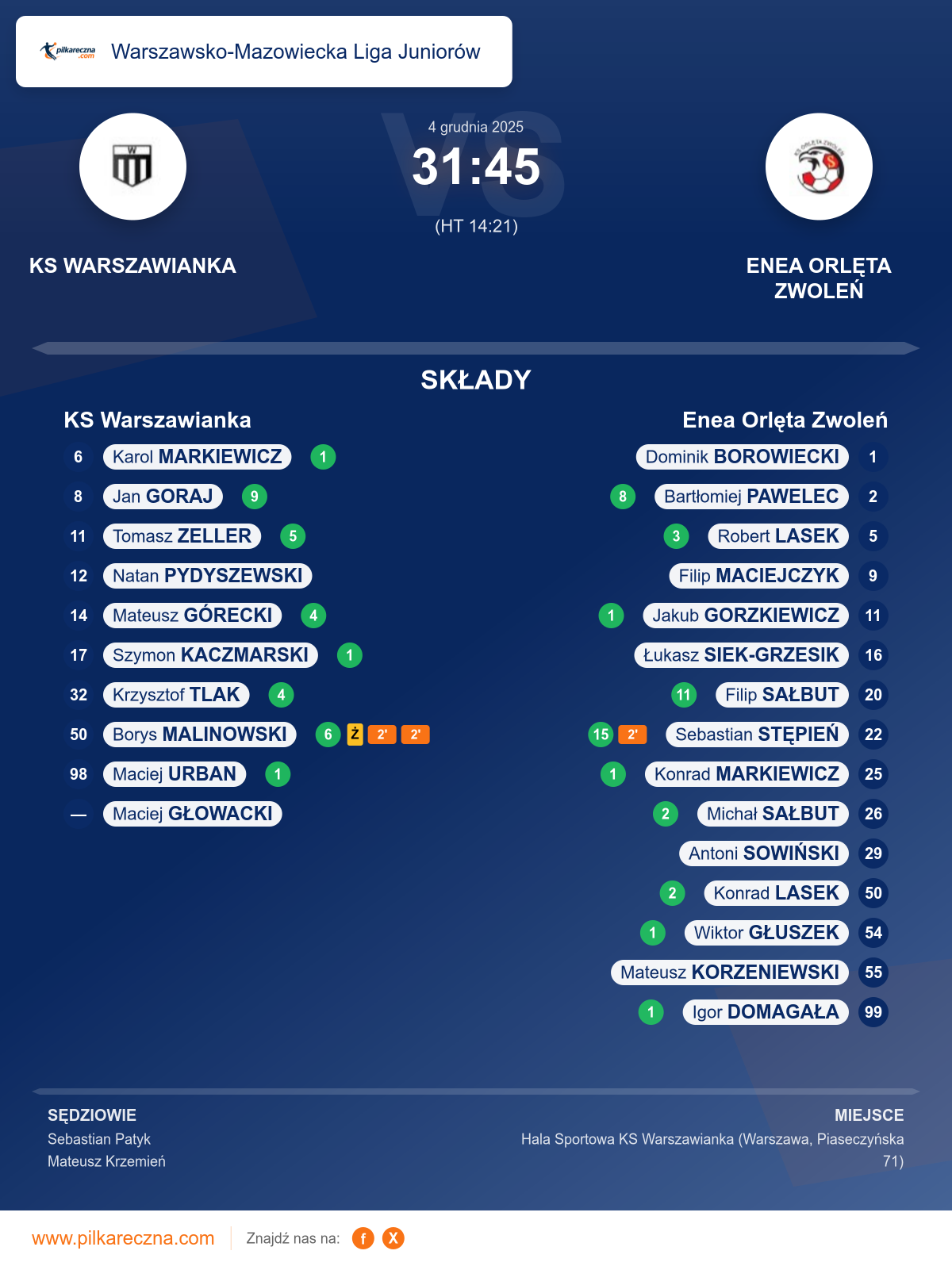 Sędziowali: Sebastian Patyk, Mateusz Krzemień