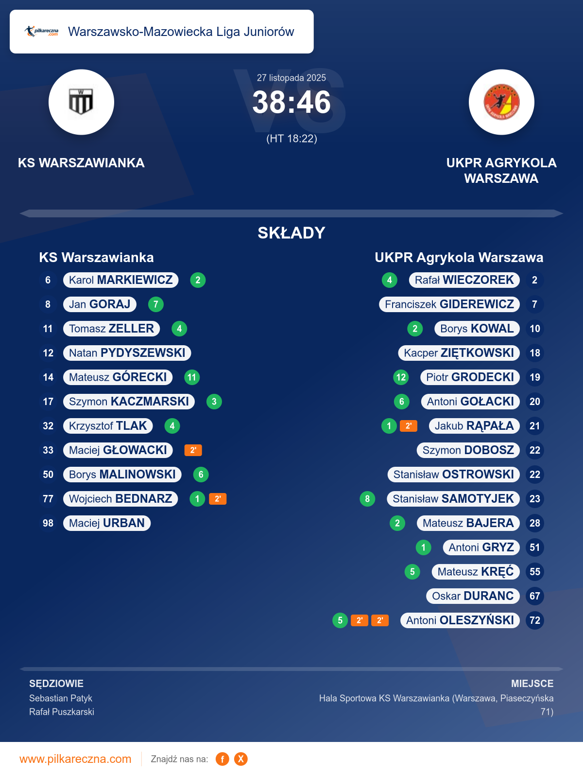 Sędziowali: Sebastian Patyk, Rafał Puszkarski