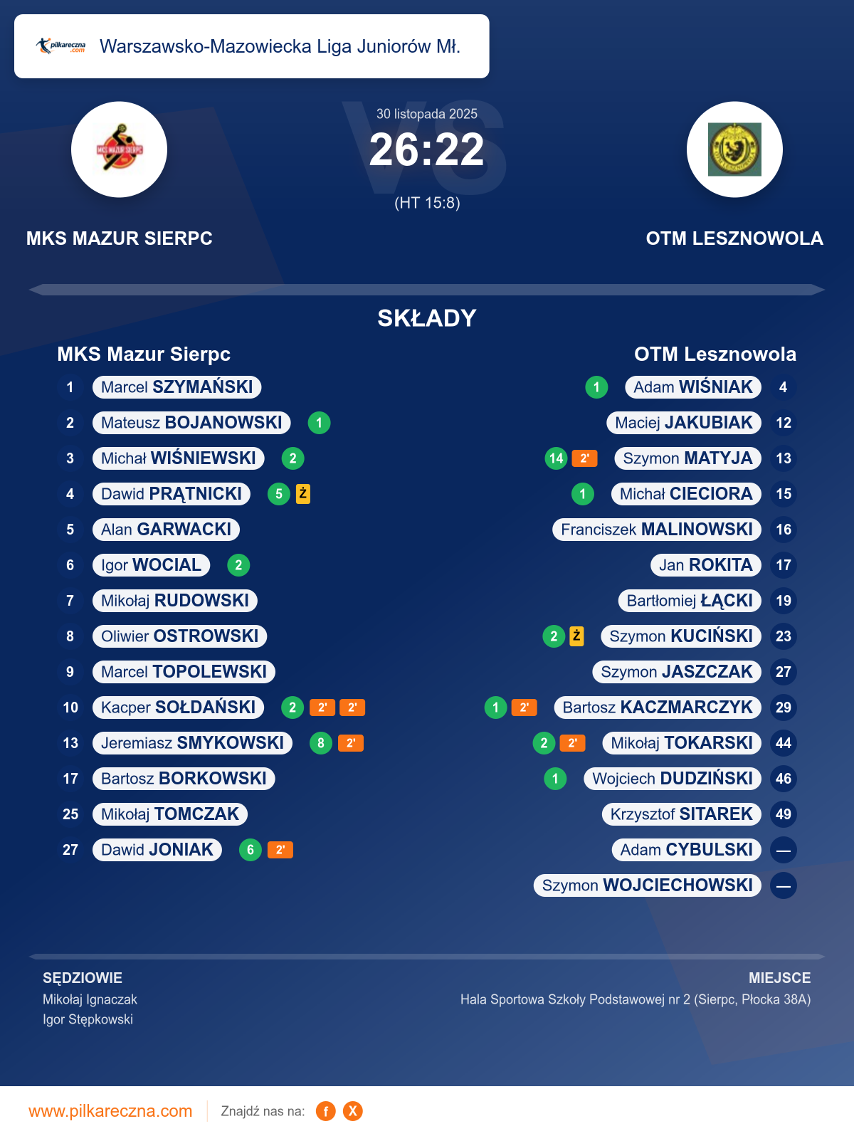 MKS Mazur Sierpc 26–22 OTM Lesznowola