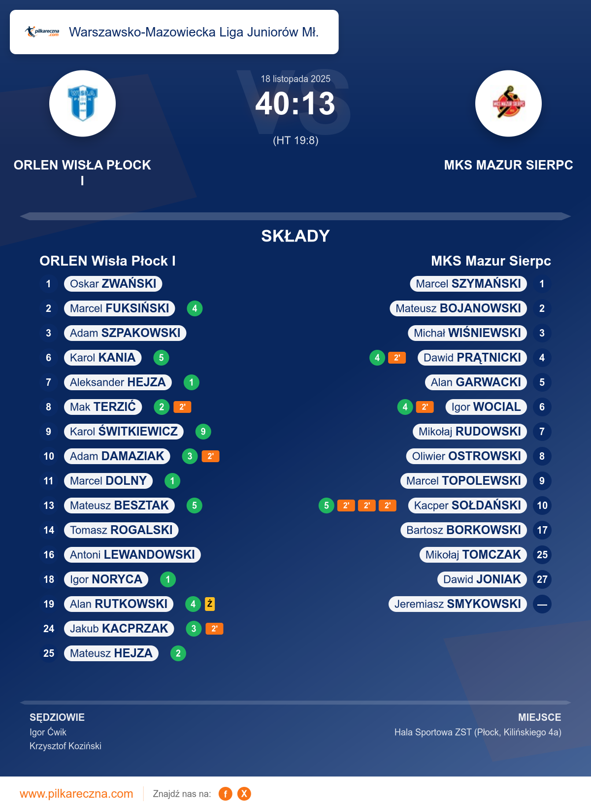 ORLEN Wisła Płock I 40–13 MKS Mazur Sierpc